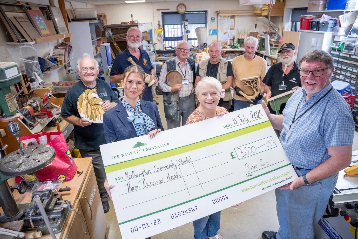 Community support charity, Northampton Community Sheds, has received a £3,000 donation from Barratt Homes to help its work enriching the lives of local people.